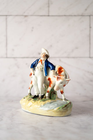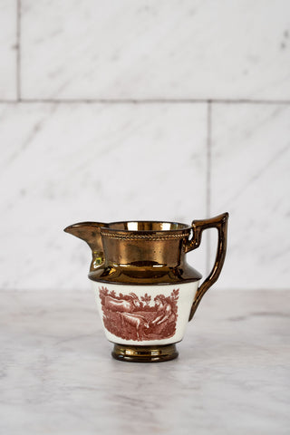 19th C. English Copper Lusterware Creamer with Red Horse, Dog, Sheep Transferware Designs