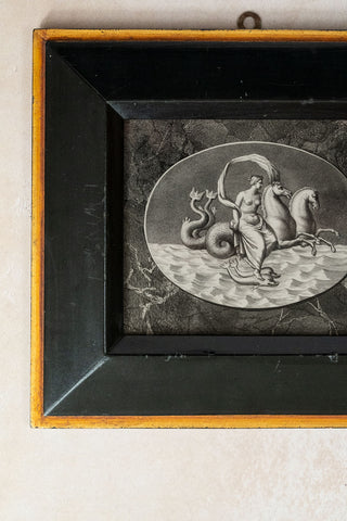 Neoclassical (18th or 19th C) Framed Engraving of the Nymph Galatea with Hippocampi and Dolphins
