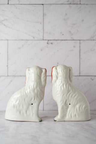 Pair of 19th Century English Staffordshire Mantle Dogs / Wally Dogs – Brown and White
