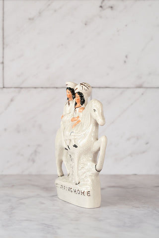 19th C. English Staffordshire Figurine: "Returning Home (from Market)" Couple on Horseback