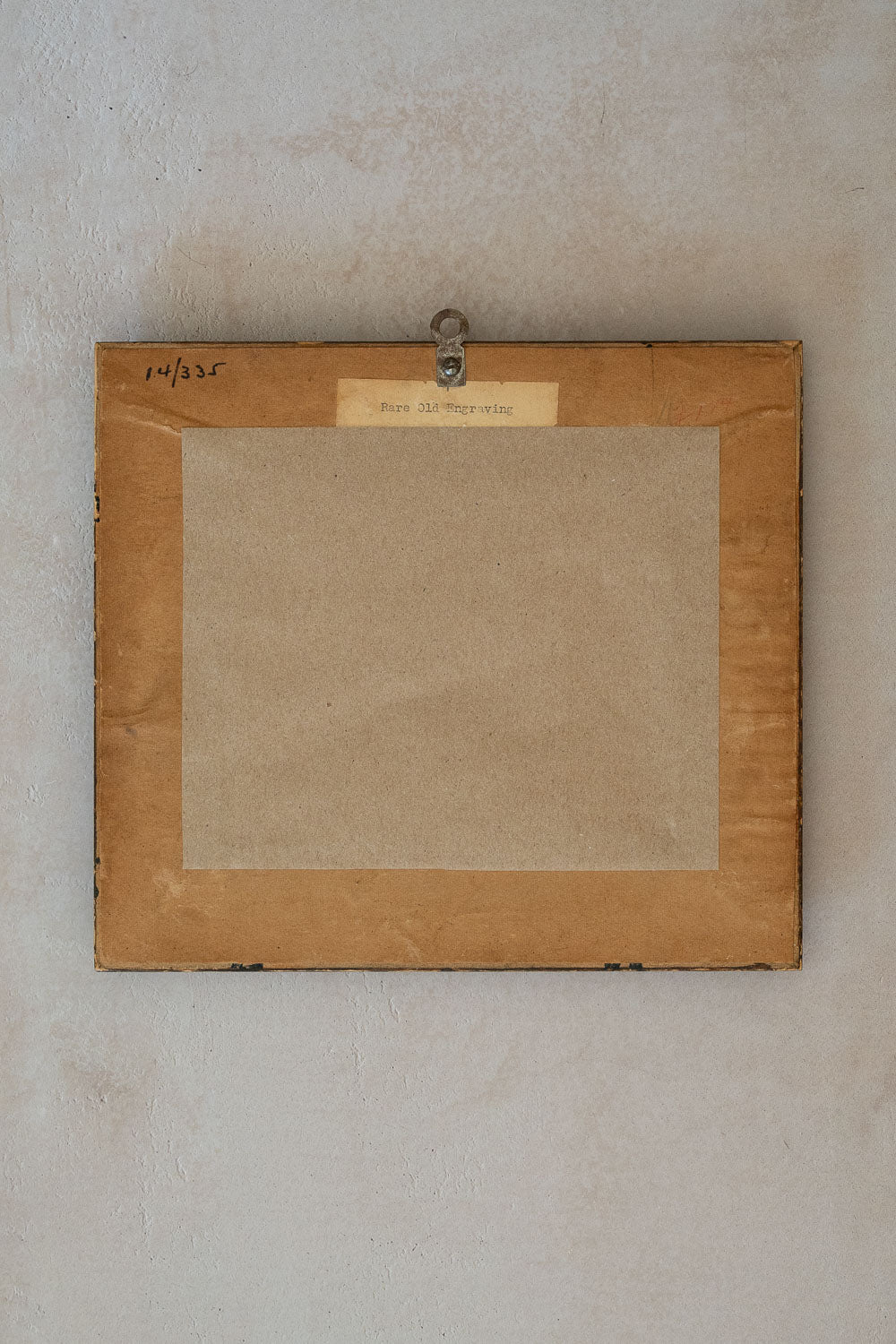 While cleaning the frame and replacing the backing board with archival museum board, I was careful to keep a charming label reading "Rare Old Engraving" intact (see last photo).